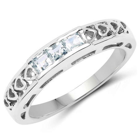 Srebrny pierścionek obrączka z akwamarynami naturalnymi