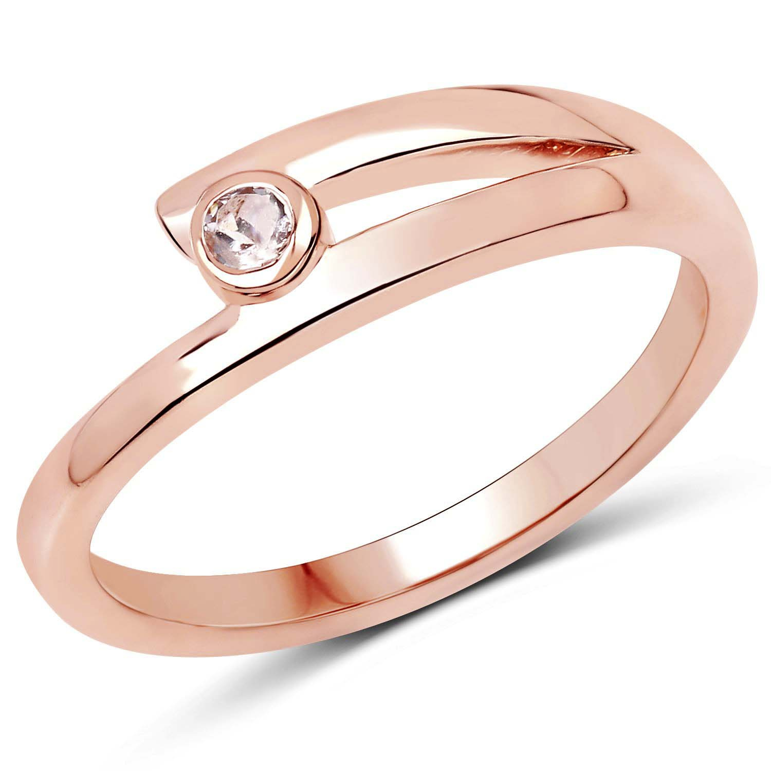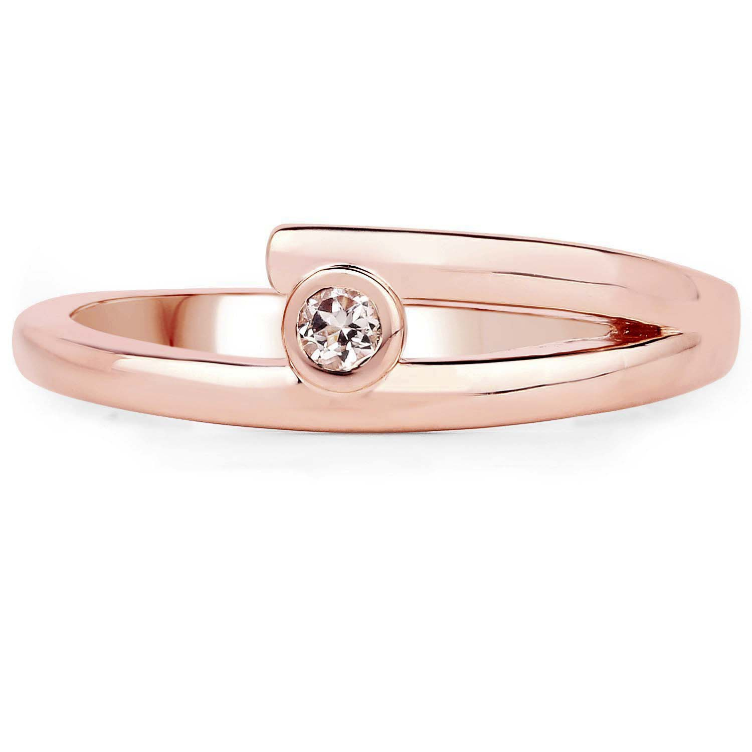 Elegancki srebrny pierścionek pokryty warstwą 14 ct różowego złota, wysadzany naturalnym morganitem. Pierścionek wykonany ze srebra próby 925.