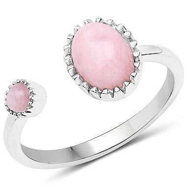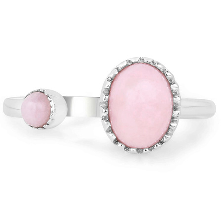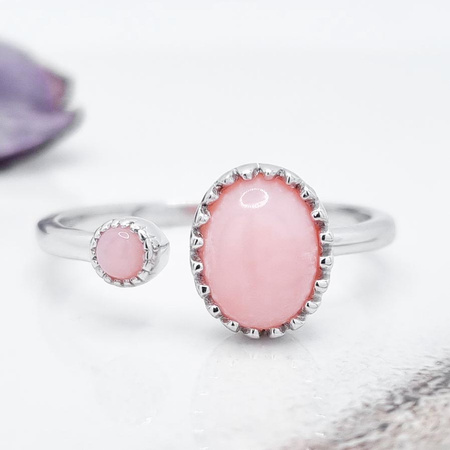 Ładny srebrny pierścionek z 2 naturalnymi różowymi opalami o oryginalnym polzamknietym wzorze, pięknie komponującymi się z rodowanym srebrem.