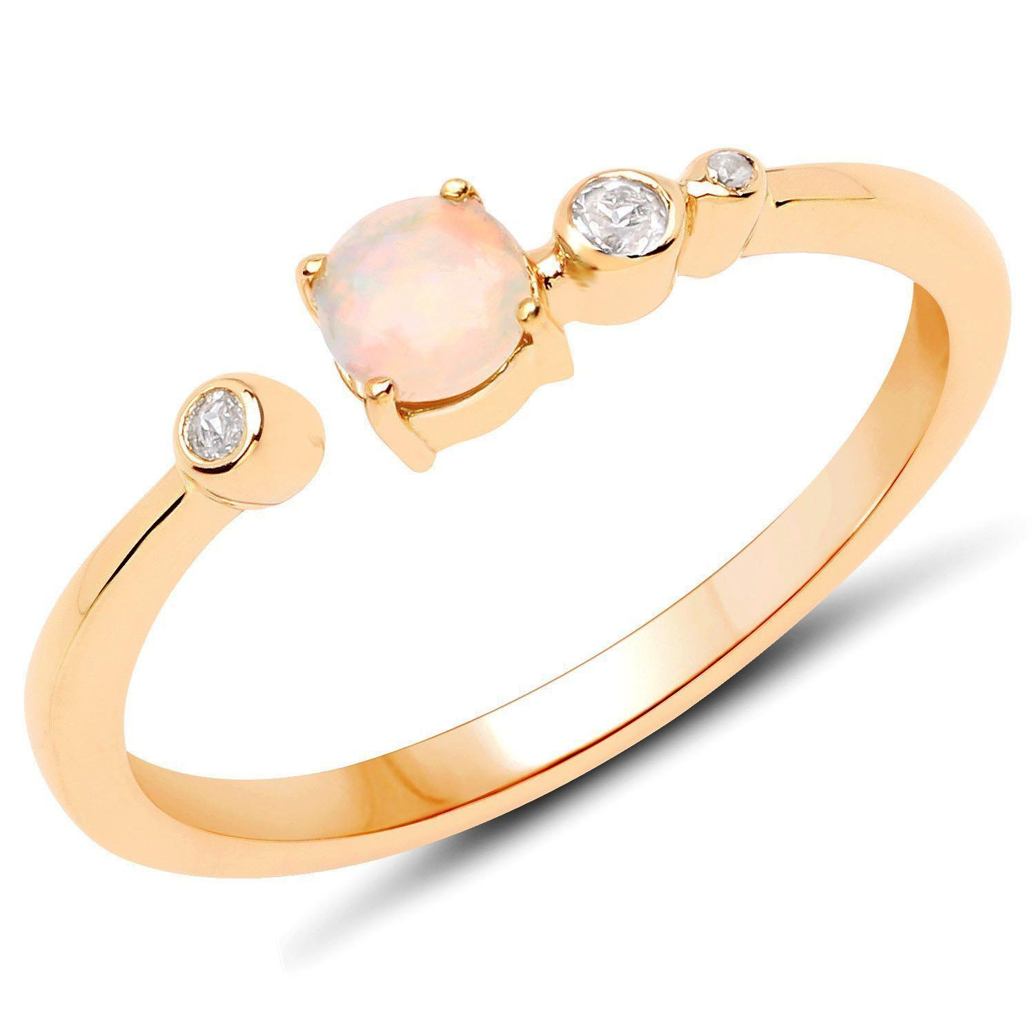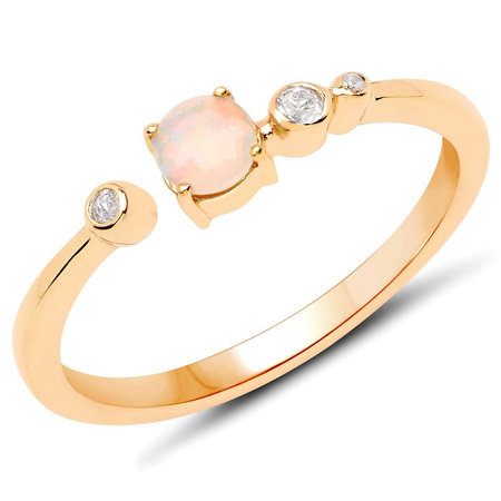 Naturalny etiopski opal: Ilość/Waga: 1/0.30 Ct, Kształt/Wielkość: Okrągły/4 mmNaturalny kryształ górski: Ilość/Waga: 3/0.065 ct, Kształt/Wielkość: Okragły/1-1.60 mmWielkość korony pierścionka: ok. 4x12,5 mm