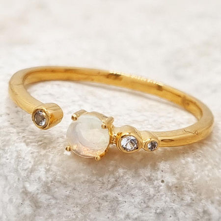 Otwarty pierścionek pozłacany z opalem i kryształem górskim