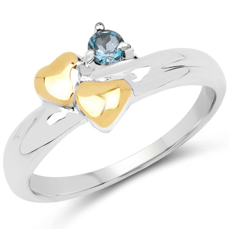 Pozłacany 14 ct żółtym złotem srebrny pierścionek z naturalnym topazem London blue, wykonany z błyszczącego rodowanego srebra próby 925.