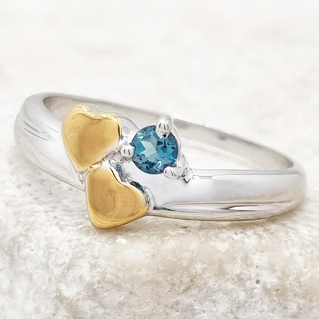 Srebrny pierścionek z serduszkiem i topazem London Blue