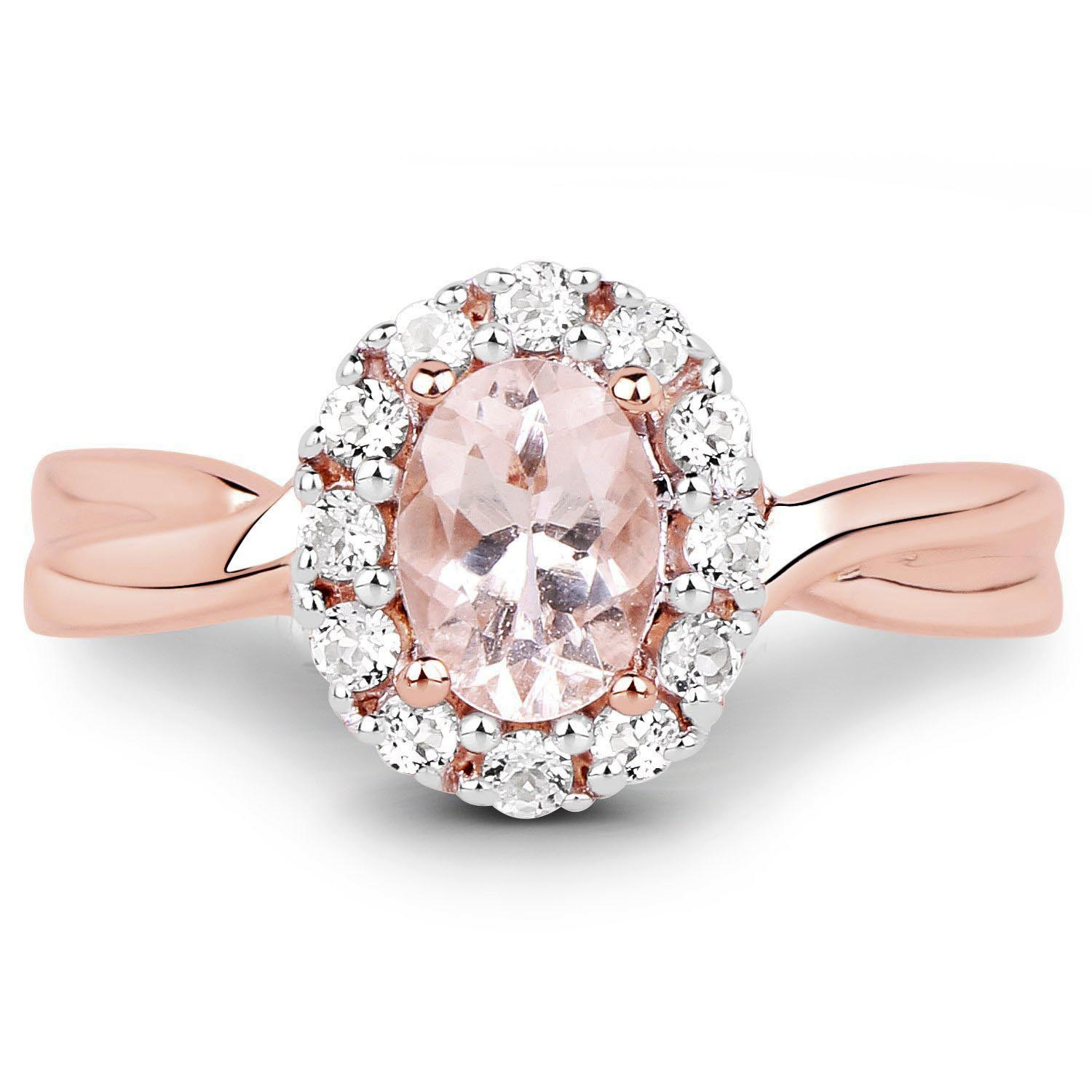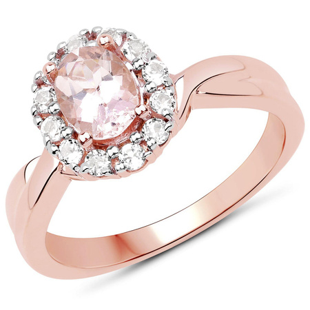 Srebrny pierścionek pokryty 14 ct różowym złotem z naturalnym morganitem i kryształami górskimiKruszec: