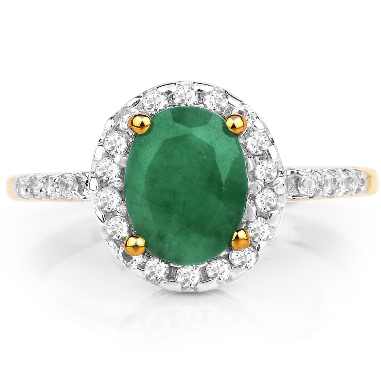 Naturalny szmaragd: Ilość/Waga: 1/1.05 ct, Kształt/Wielkość: Owal/8x6mmNaturalny kryształ górski: Ilość/Waga: 26/0.39 ct, Kształt/Wielkość: Okragły/1.30 mmWielkość korony pierścionka: ok. 8x18 mmWłaściwości kamieni