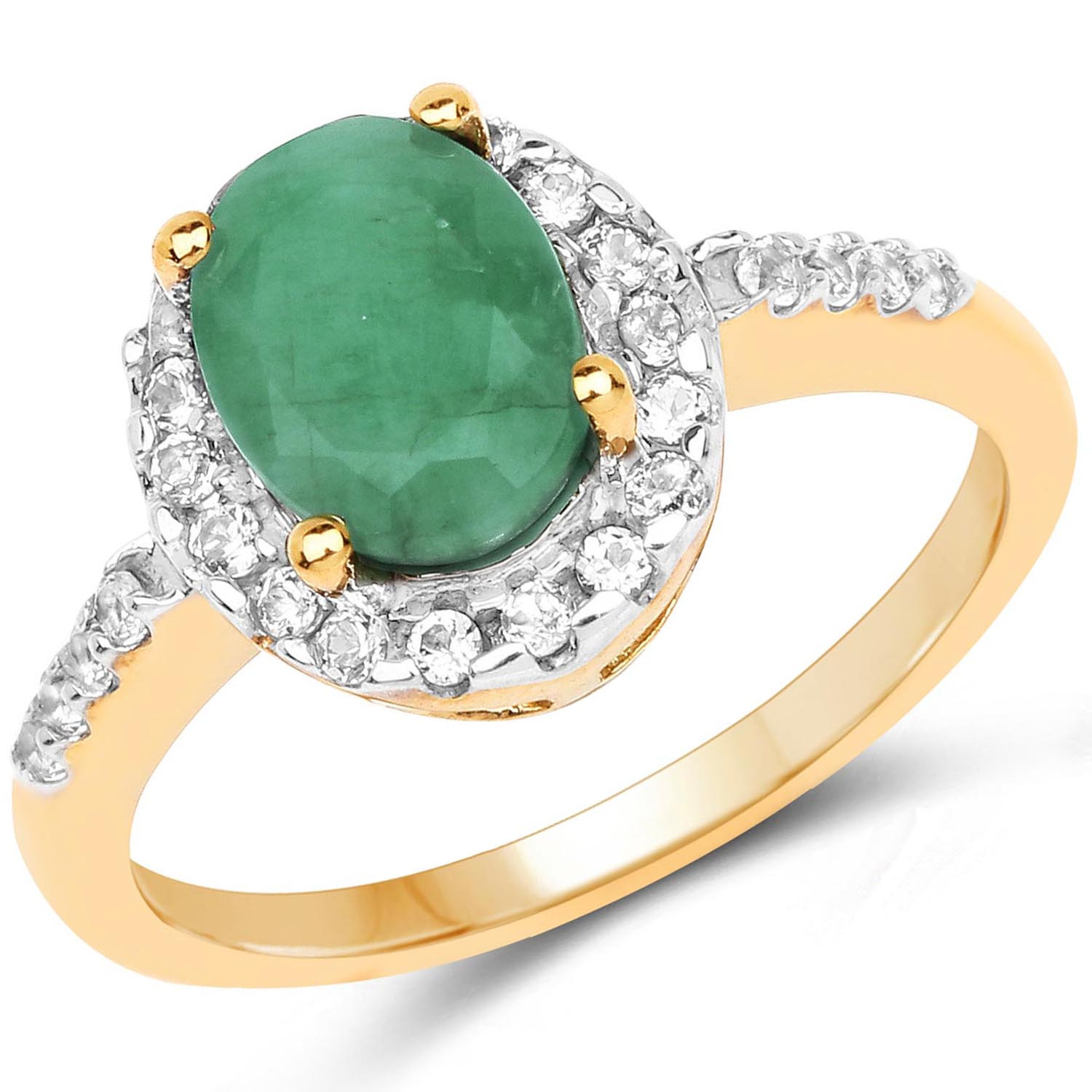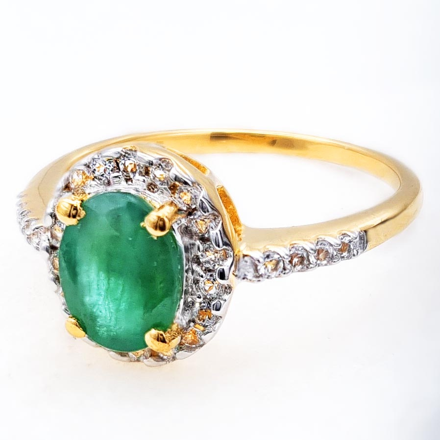 Srebrny pierścionek z naturalnym szmaragdami i kryształami górskimi pozłacany 14 ct żółtym złotemKruszec:
