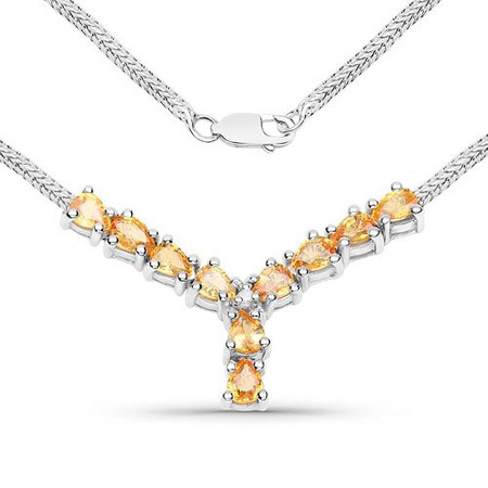 Srebrny naszyjnik damski z szafirami żółtymi i diamentem