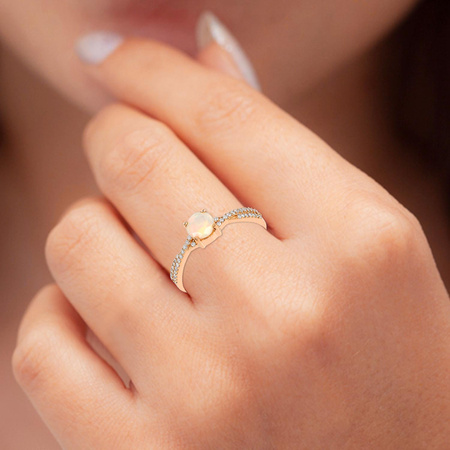 Złoty pierścionek z opalem etiopskim i diamentamiKruszec: