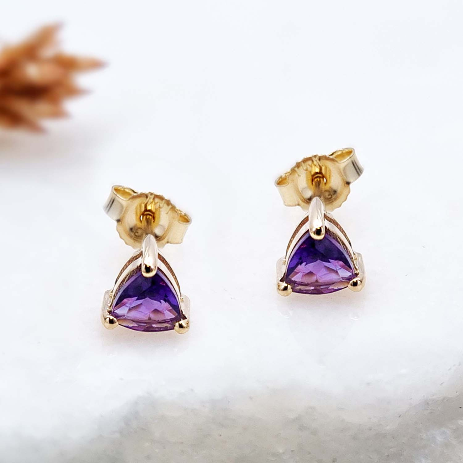 Naturalny ametyst: Ilość/Waga: 2/0.50 ct, Kształt/Wielkość: Trillion/4 mmWielkość kolczyków: ok. 4.5x4.5x3.5 mmWłaściwości kamieni