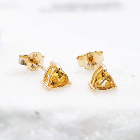 Naturalny cytryn: Kształt/Wielkość: Trilion/4 mm, Kształt/Wielkość: Serce/4 mmWielkość kolczyków: ok. 5x4,5x4 mmWłaściwości kamieni