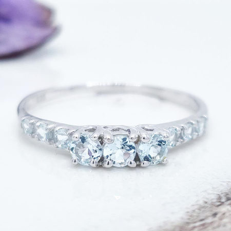 Srebrny pierścionek z naturalnymi akwamarynamiKruszec: