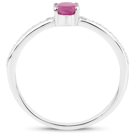 Naturalny rubin : Ilość/Waga: 1/0.50 ct, Kształt/Wielkość: Owalny/5x4 mmNaturalny kryształ górski: Ilość/Waga: 2/0.01 ct, Kształt/Wielkość: Okrągły/1 mmWielkość korony pierścionka: ok. 5x4 mm