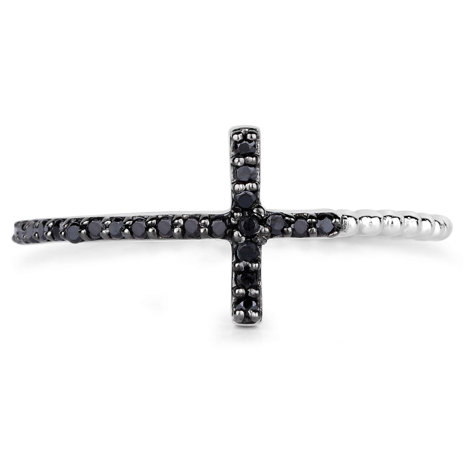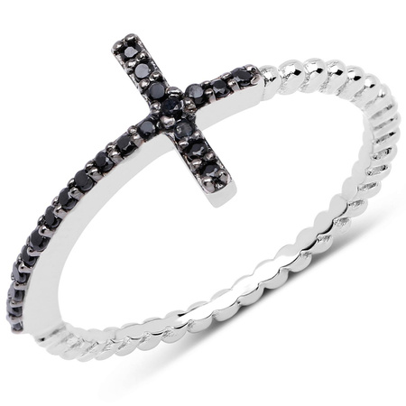 Subtelny srebrny pierścionek z 22 naturalnymi czarnymi spinelami, wspaniale kontrastującymi z rodowanym srebrem próby 925. Biżuteria srebrna ze spinelami to idealny pomysł na ponadczasowy prezent dla kobiety w każdym wieku.