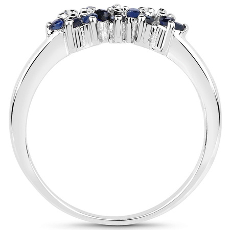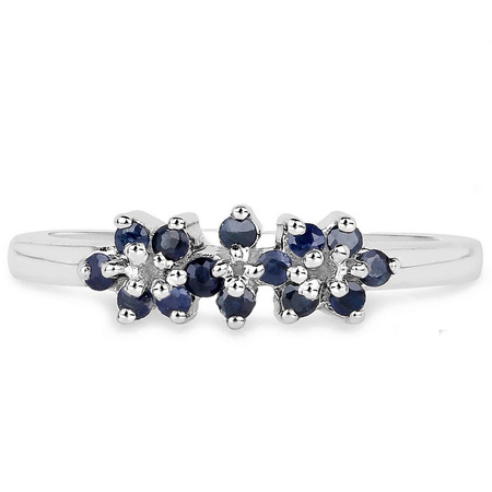 Subtelny srebrny pierścionek wykonany z rodowanego srebra próby 925 z 14 pięknymi naturalnymi szafirami niebieskimi.