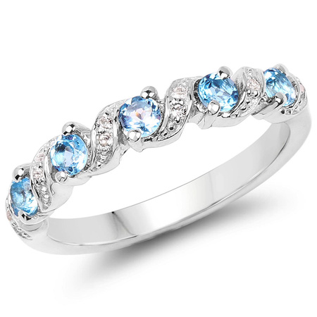 Naturalny topaz niebieski: Ilość/Waga: 5/0.60 ct, Kształt/Wielkość: Okrągły/ 3 mmNaturalny kryształ górski: Ilość/Waga: 8/0.04 ct, Kształt/Wielkość: Okragły/1.0 mmWielkość korony pierścionka: ok. 11x10 mmKod produktu: 5365Właściwości kamieni