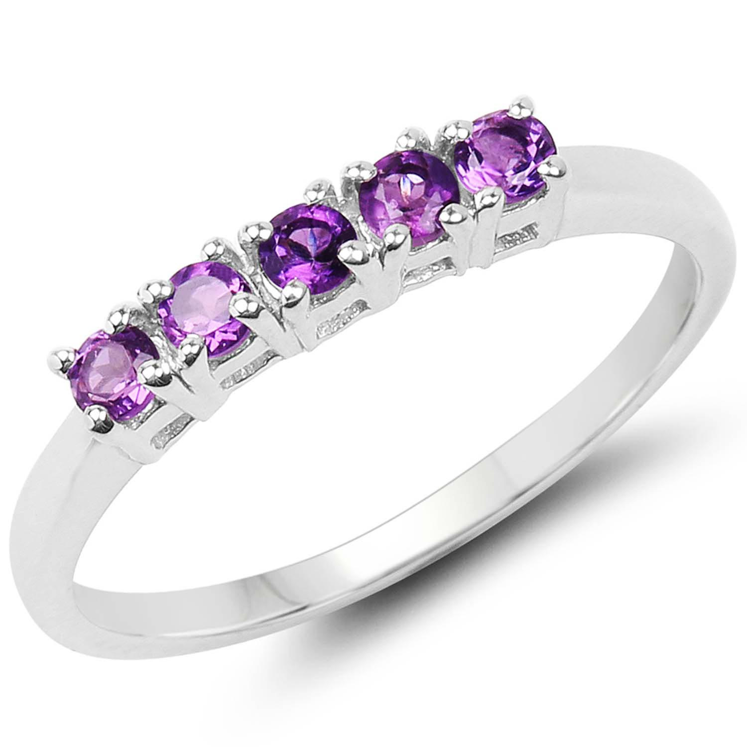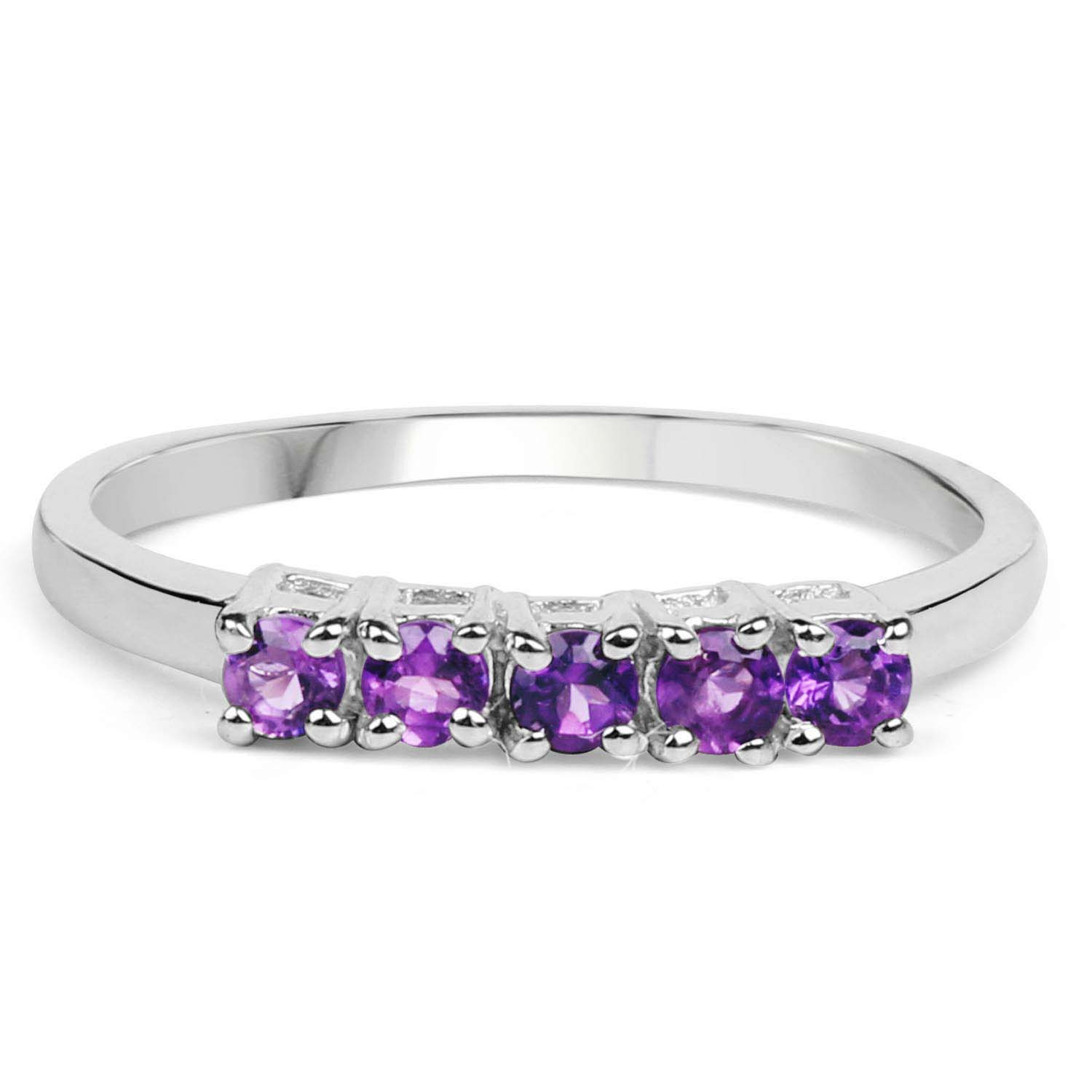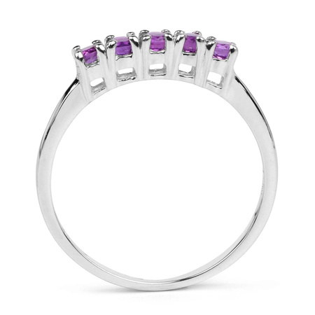 Klasyczny srebrny pierścionek z 5 naturalnymi ametystami. Pierścionek ze srebra rodowanego próby 925.
