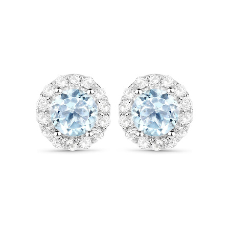 Naturalny topaz niebieski: Ilość/Waga: 2/2.10 ct i 2/1.20 ct,, Kształt/Wielkość: 2/Okrągły/ 6 mm i 2/Okrągły/5 mmNaturalny kryształ górski: Ilość/Waga: 62/0.93 ct, Kształt/Wielkość: Okragły/1.30 mmWielkość wisiorka: ok. 17x9 mmDługość łańcuszka: ok. 45 cmWielkość korony pierścionka: ok. 7 mmWielkość kolczyków: ok. 6x6 mmWłaściwości kamieni