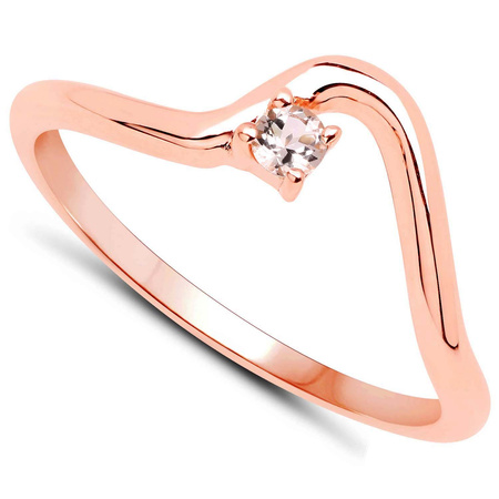 Elegancki srebrny pierścionek pokryty warstwą 18 ct różowego złota, wysadzany naturalnym morganitem. Pierścionek wykonany ze srebra próby 925.
