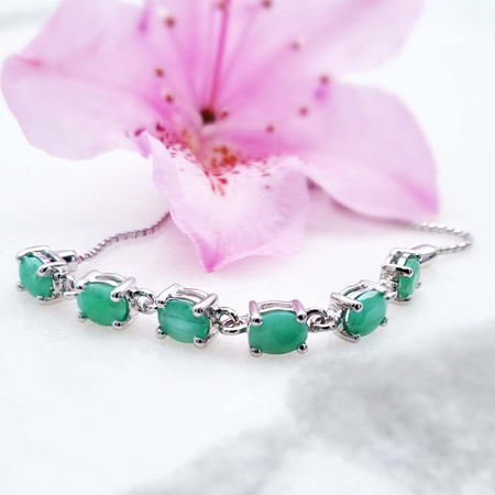 Naturalny szmaragd: Ilość/Waga: 6/1.68 ct, Kształt/Wielkość: Owalny/ 5x4 mmSzerokość bransoletki: ok. 4.5 mmDługość bransoletki: ok. 22 cmWłaściwości kamieni