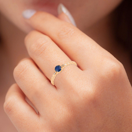 Wiemy jak trudno jest znaleźć odpowiedni dla siebie pierścionek złoty z kamieniami. Sam wybór i kolor głównego kamienia jest czasem nie lada wyzwaniem. Jeśli jednak lubisz chociaż trochę pierścionki z niebieską kulką to ten złoty pierścionek damski, wykonany z żółtego złota próby 417, z naturalnym szafirem niebieskim i 4 diamentami z pewnością przypadnie Tobie do gustu. To istny rarytas jubilerski, który został stworzony, aby emanować elegancją i pięknem. Nasz złoty pierścionek to nie tylko biżuteria, to prawdziwe dzieło sztuki, które doda Twojemu wyglądowi niepowtarzalnego blasku. 😍