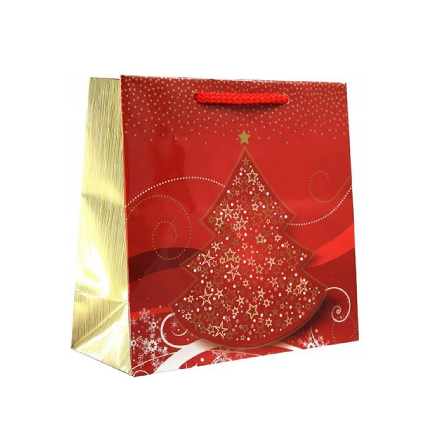 Rodzaj produktu: Świąteczna torba prezentowa "czerwono - złota choinka" 16x7x16 cm na biżuterięWielkość produktu: 16x7x16 cmPrzeznaczenie: Opakowanie na biżuterięKolor: czerwono- złotyRodzaj materiału: Laminowana torebkaKod produktu: 5668