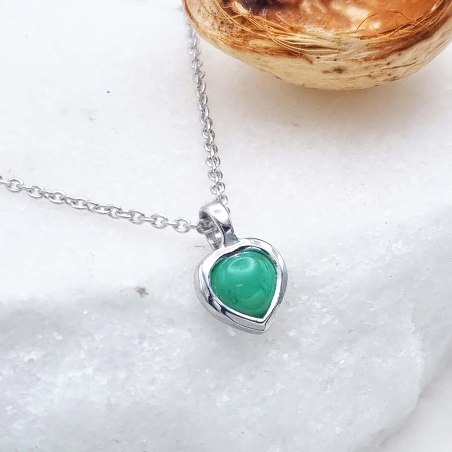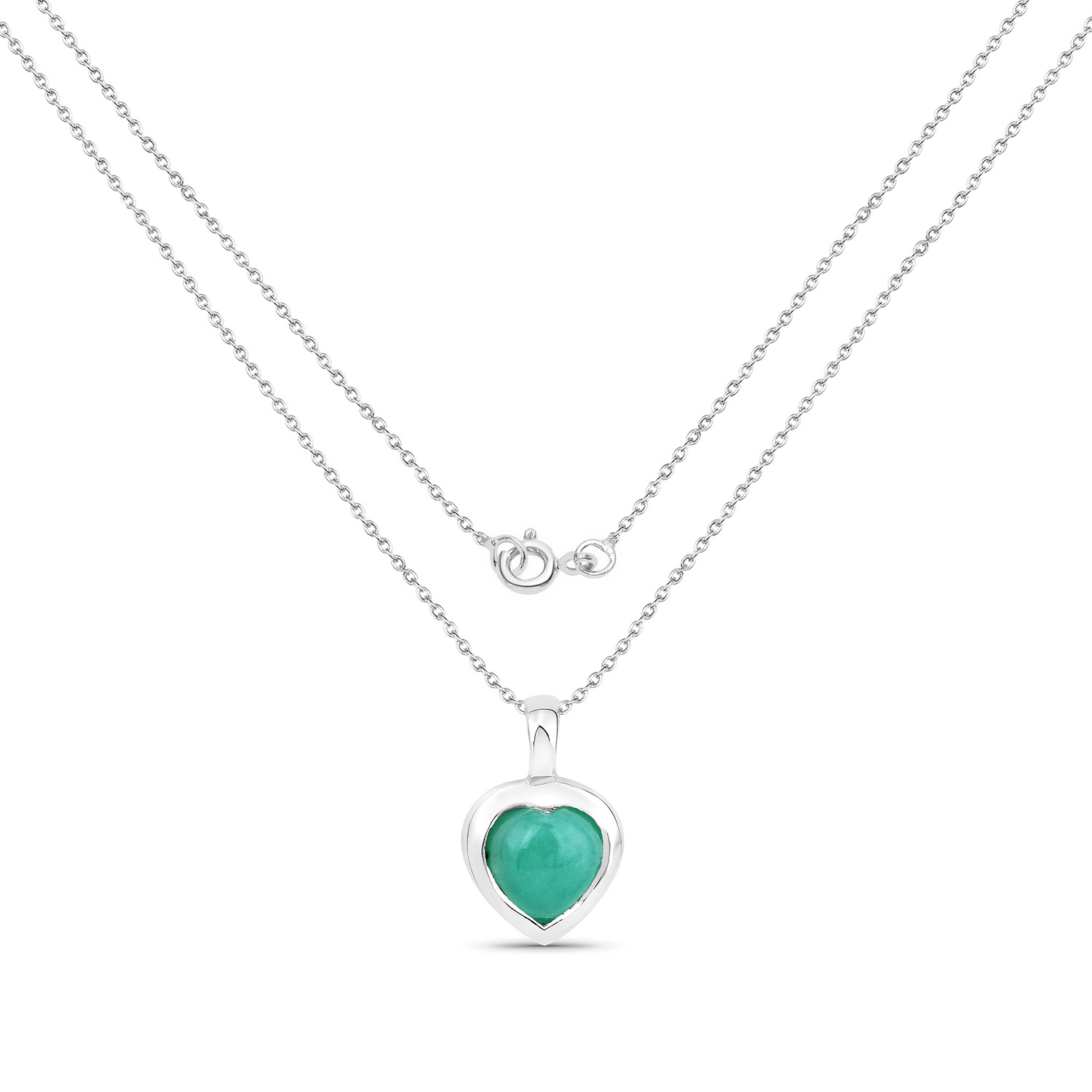 Naturalny szmaragd: Ilość/Waga: 1/0,43 ct, Kształt/Wielkość: Serce/5 mm Wielkość wisiorka: ok. 6,2x6,2x10,4 mmDługość łańcuszka: ok.44 cmWłaściwości kamieni