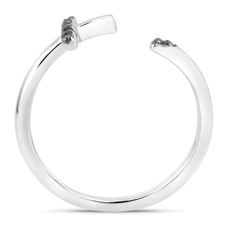 Subtelny srebrny pierścionek z 7 naturalnymi niebieskimi diamentami, wspaniale kontrastującymi z rodowanym srebrem próby 925. Biżuteria srebrna z diamentami to idealny pomysł na ponadczasowy prezent dla kobiety w każdym wieku.