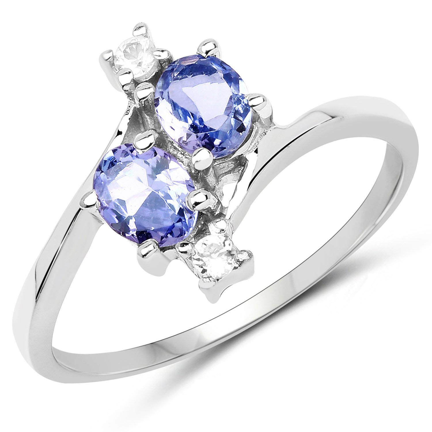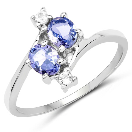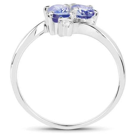 Naturalny tanzanit: Ilość/Wage: 2/0.66 ct, Kształt/Wielkość: Owalny/5x4 mmNaturalny biały szafir: Ilość/Waga: 2/0.10 ct, Kształt/Wielkość: Okrągły/2 mmWielkość korony pierścionka: ok. 9x12 mmWłaściwości kamieni