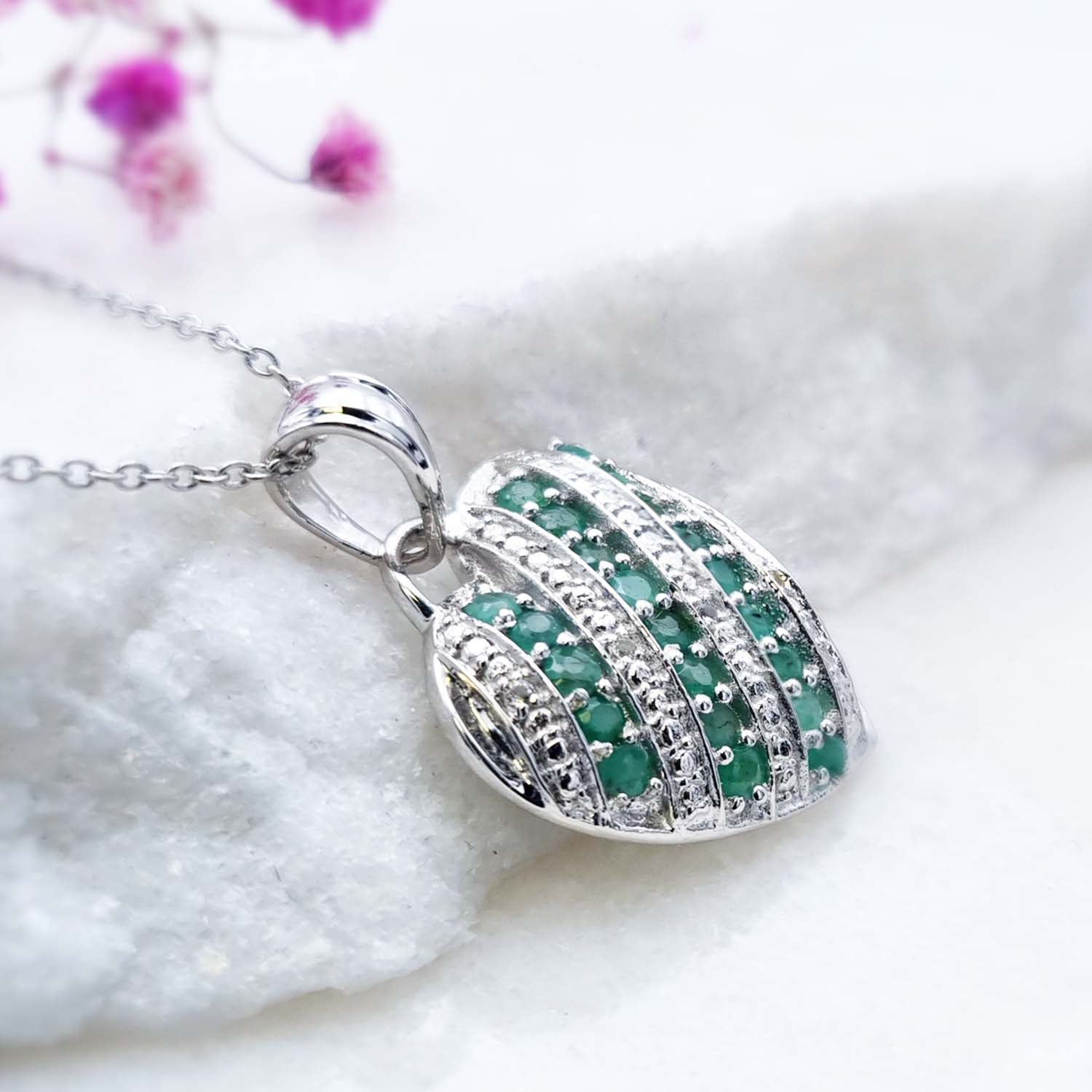 Srebrny wisiorek serce z 26 naturalnymi kolumbijskimi szmaragdami i 4 kryształami górskimi,wykonany ze srebra rodowanego próby 925. Wisiorek w kształcie serca będzie wspaniałym prezentem dla ukochanej osoby.