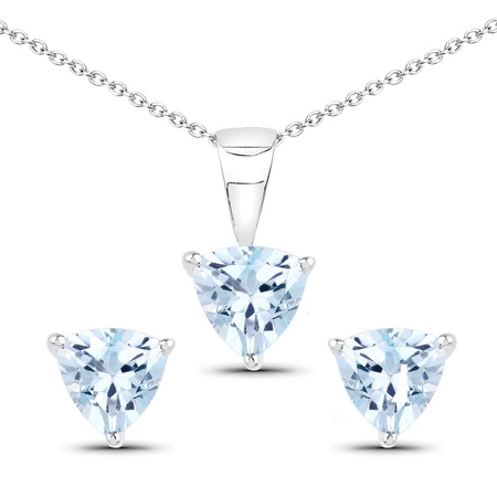 Naturalny topaz niebieski: Ilość/Waga: 3/2.40 ct, Kształt/Wielkość: Trylion/ 6 mmWielkość kolczyków: ok. 6x6 mmWielkość wisiorka: ok. 6x13 mmDługość łańcuszka: ok. 45 cm