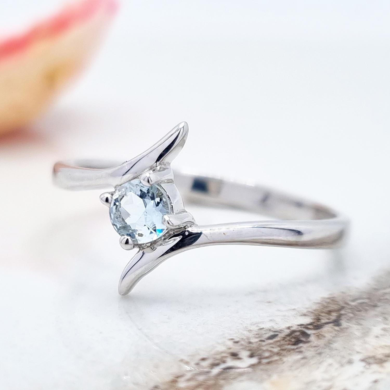 Klasyczny srebrny pierścionek z naturalnym akwamarynem, wykonany ze srebra rodowanego próby 925.