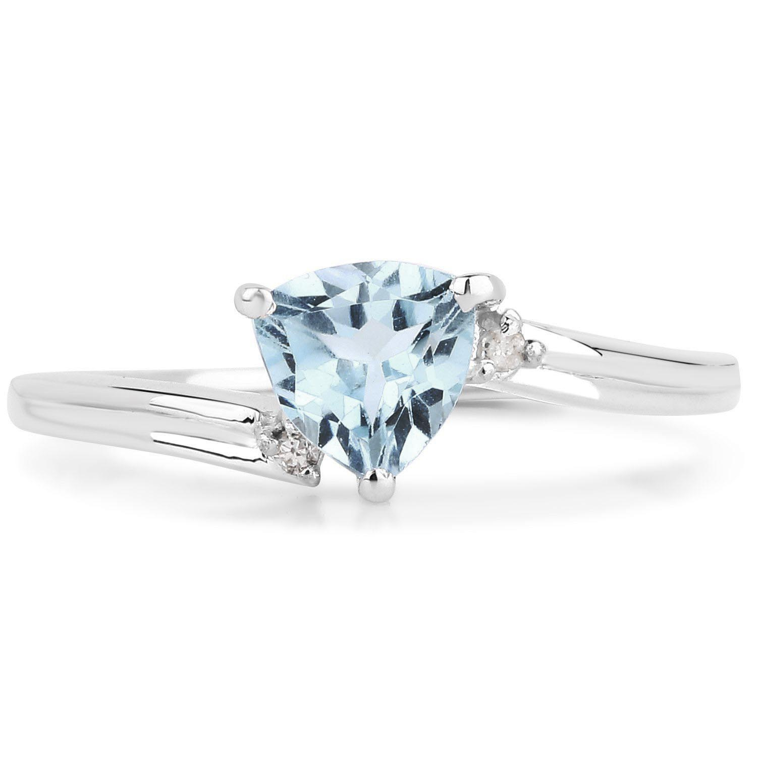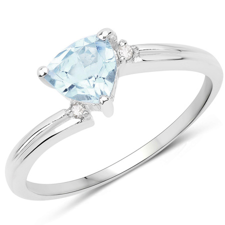 Naturalny topaz niebieski: Ilość/Waga: 1/0.80 ct, Kształt/Wielkość: Trylion/6 mmNaturalny diament: Ilość/Waga: 2/0.02 ct, Kształt/Wielkość: Okrągły/1.30 mmWielkość korony pierścionka: ok. 7x7 mm