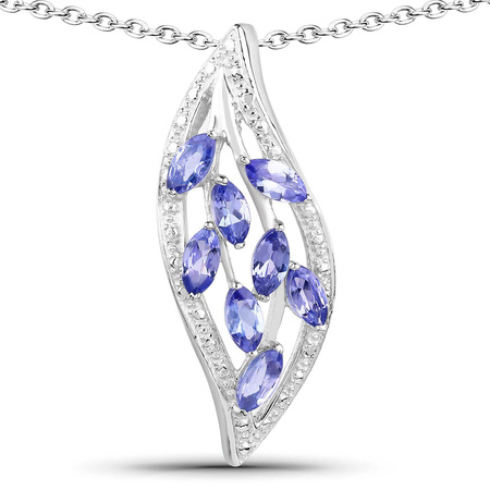 Naturalny tanzanit: Ilość/Waga: 8/1.12 ct, Kształt/Wielkość: Markiza/5x2.50 mmWielkość wisiorka: ok. 1.3x3.1 cmDługość łańcuszka: ok. 45 cm